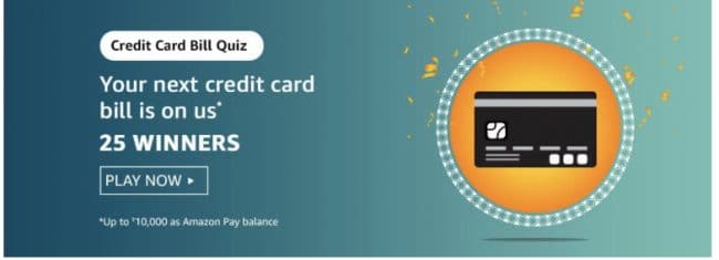 Amazon Credit Card Bill Quiz Answers 23 Nov : Play and Get your Credit card bill on us ( 25 Winners )