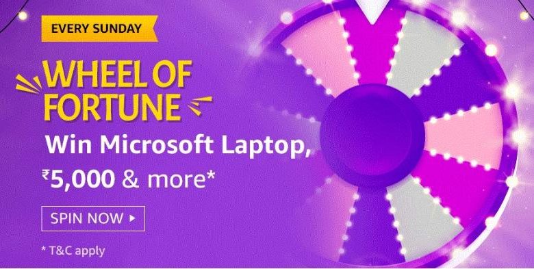 Amazon 23 Aug Wheel Of Fortune Quiz Answer: Play And Win Amazon 23 Aug Wheel Of Fortune Quiz Answer: Play And Win Microsoft Laptop, 5000 Rs And More